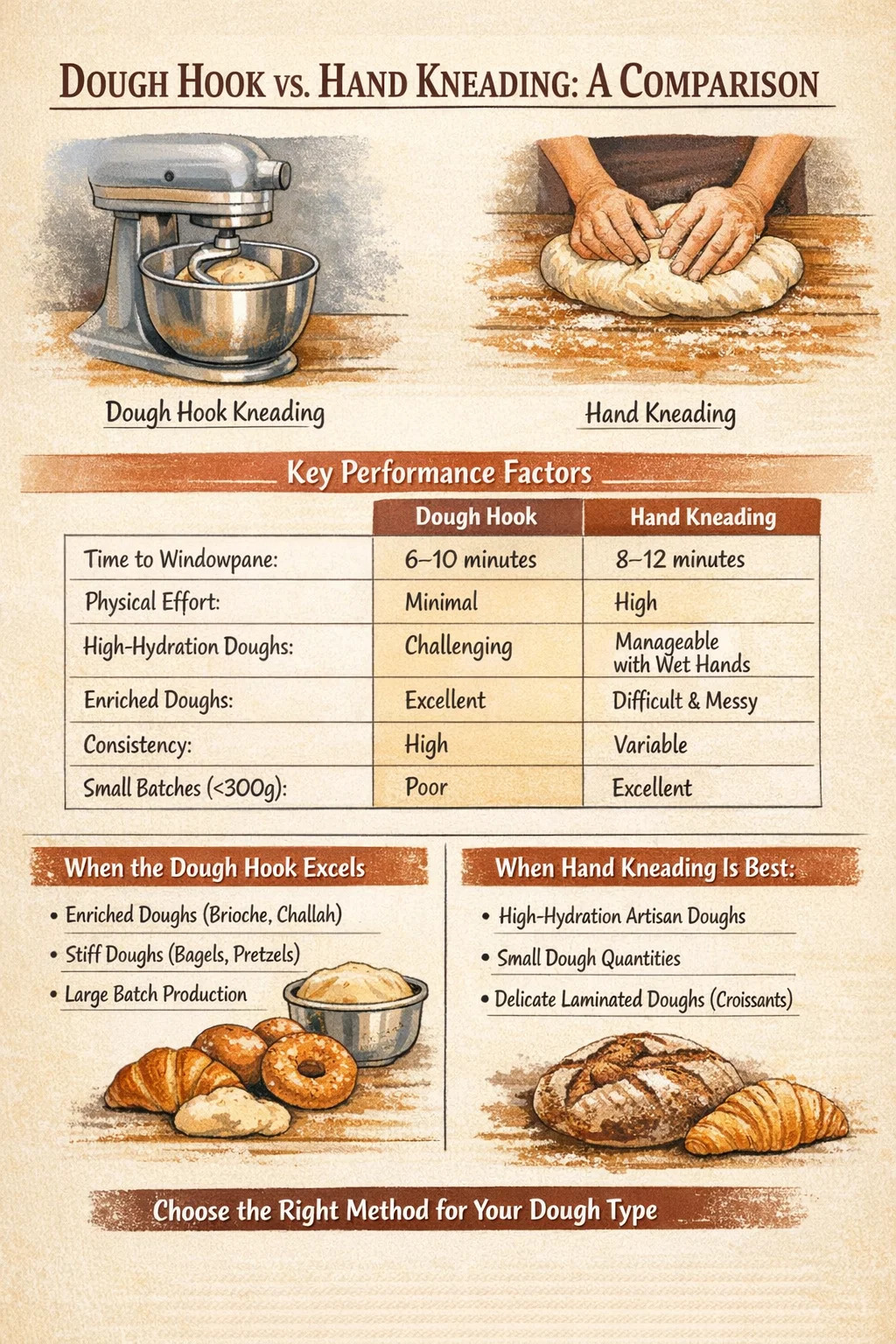 Stroj nenahrádza pekárov úsudok. Poznať svoje cesto, čítať jeho štruktúru a testovať správny vývoj sú zručnosti, ktoré zostávajú nevyhnutné bez ohľadu na to, či mechanickú prácu vykonáva hák alebo pár rúk.